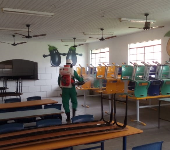De acordo com os especialistas, a desinfecção  dos ambientes deve acontecer de forma contínua, dependendo  do local, todos os dias.