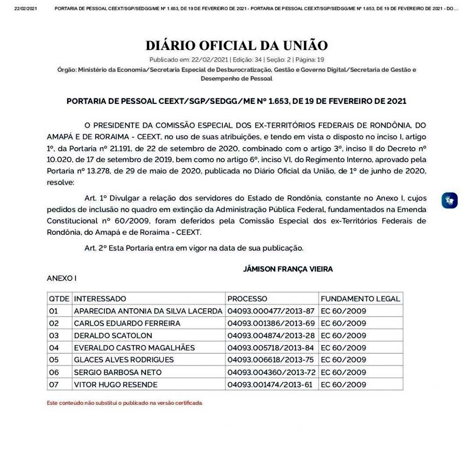 O pedido desses servidores foi fundamentado na Emenda Constitucional nº 60/2009, conforme revela o documento