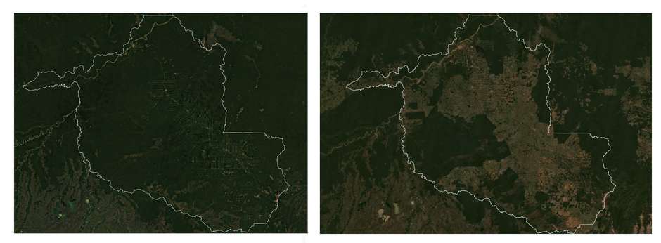 Rondônia é um dos Estados com mais anúncios do tipo no Facebook. Quase completamente coberto pela Floresta Amazônica até 1980, já perdeu cerca de um terço de suas matas nativas.