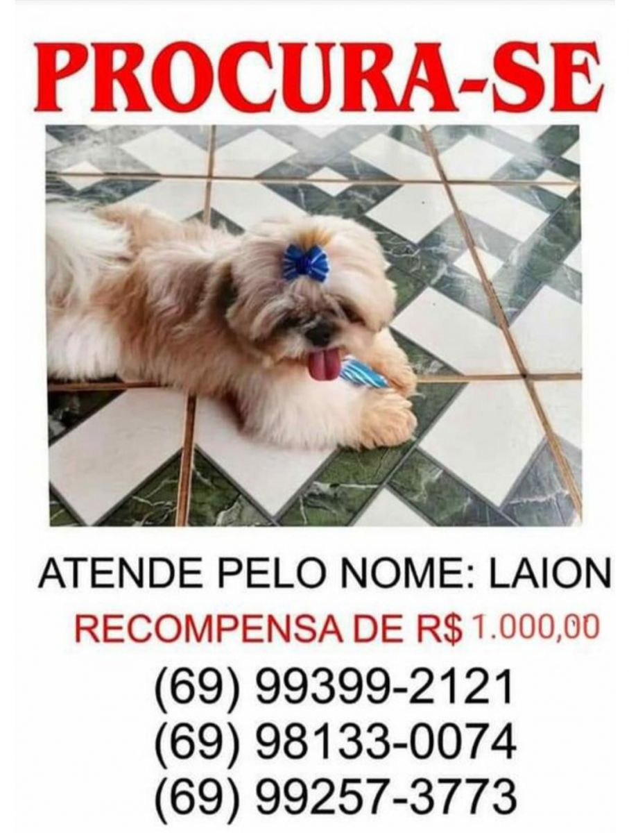 Estou oferecendo dinheiro para quem encontrar meu cãozinho, pois ele é o xodó da casa. É muito sofrimento que estamos passando, lá em casa o pessoal está pra baixo. Está complicado”, disse ela.