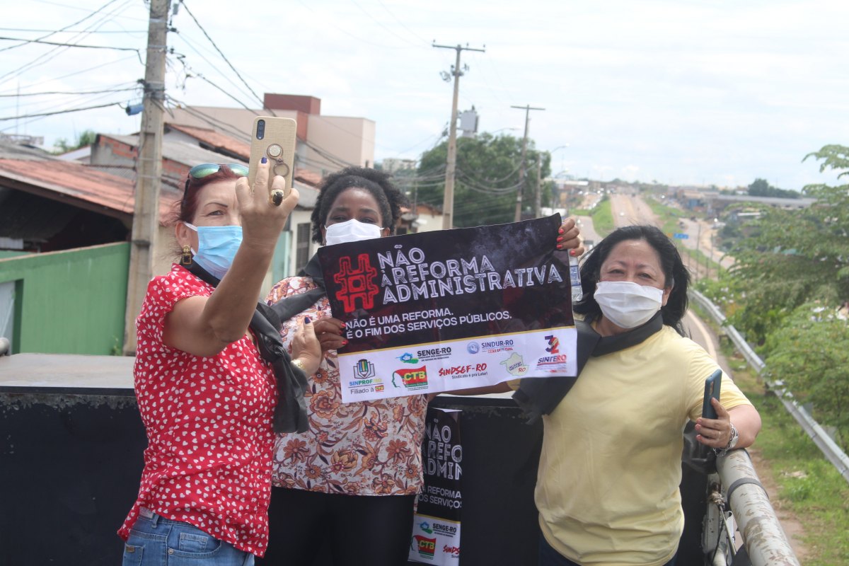 Em carreata formada por mais de 100 veículos, e com respeito aos protocolos de segurança contra Covid-19, a manifestação percorreu diversos pontos da capital rondoniense, teve início no Espaço Alternativo, seguindo pela região central e encerrando na zona Sul, em frente a UPA (Unidade de Pronto Atendimento), para homenagear os profissionais da saúde que diretamente estão batalhando contra o vírus e salvando vidas, mesmo sem o reconhecimento das autoridades. A categoria está entre as que serão penalizadas caso a Reforma Administrativa seja aprovada.