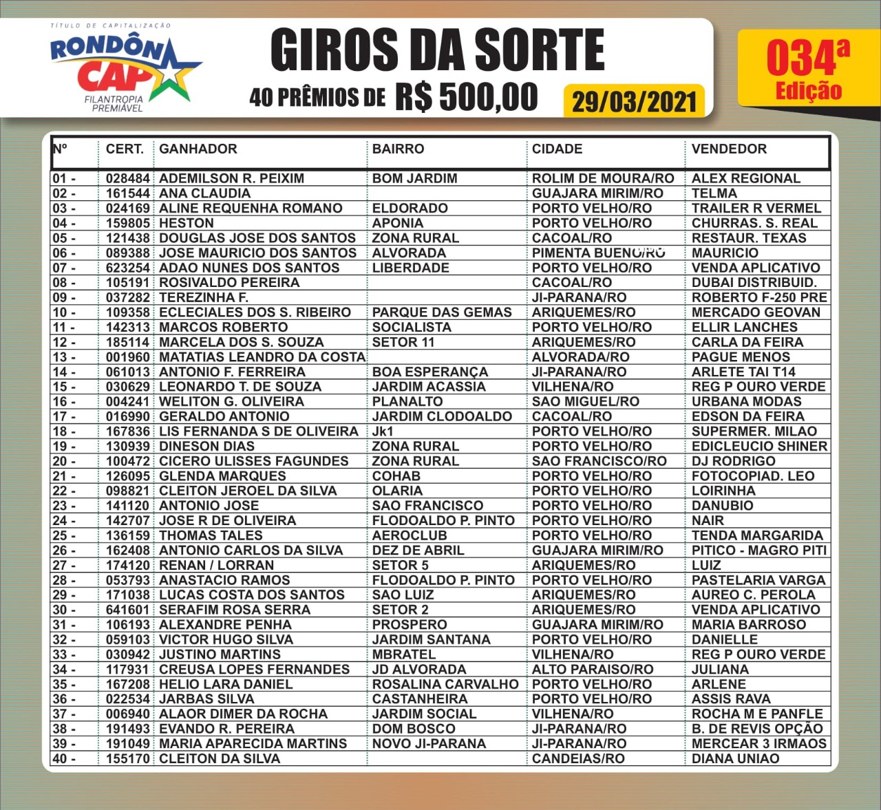 Confira quais foram os ganhadores do sorteio principal e dos giros da sorte: