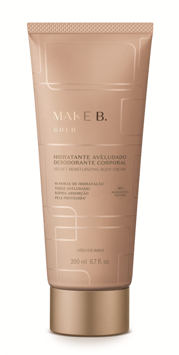 Para manter-se sempre hidratada, a linha também inclui o Make B. Gold Hidratante Aveludado Desodorante Corporal, com framboesa, violeta e bergamota, ideal para a revitalização completa da pele.