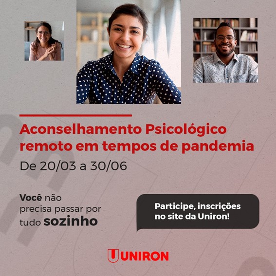 Para contribuir com a sociedade e minimizar os impactos do momento atual, a UNIRON, implantou a oferta de assistência psicológica à população em geral, oportunizando aos seus acadêmicos do curso de Psicologia, experiências práticas através da modalidade de Aconselhamento Psicológico não diretivo. Esse projeto visa inserir os acadêmicos que estão cursando a disciplina Aconselhamento e Orientação Psicológica, para prestarem assistência psicológica nessa modalidade, e, com isso, poderem aliar a articulação teórico-prática exigida pela referida disciplina com a ampliação das oportunidades de acolhimento a sociedade de uma forma geral. O atendimento é semanal, de forma online, e estão sendo supervisionados pelo Professor Pedro Lira, que atua na área da Psicologia há mais de 3 décadas, portanto, possui know-how adequado para atuar nesse desafio.