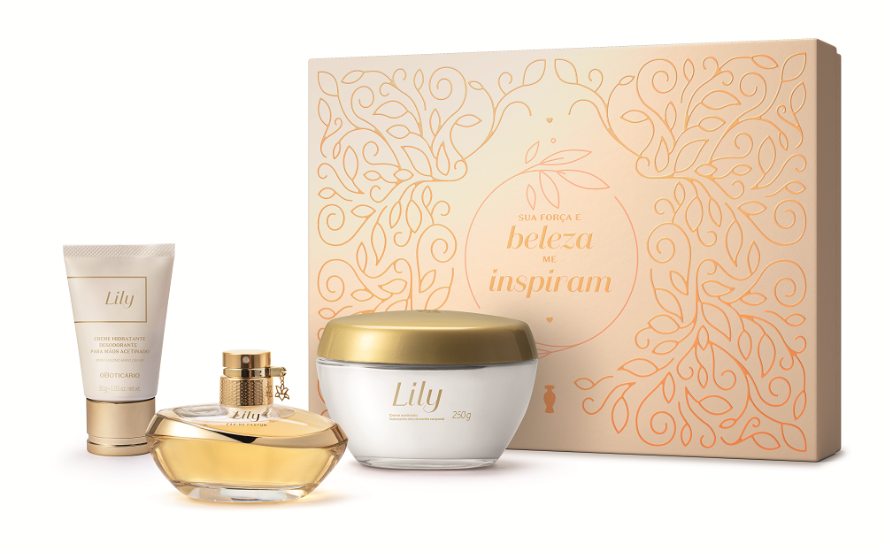 Dentre as opções, o Kit Lily é ideal para aquela mãe que traz delicadeza, mas também é intensa. O kit conta com a fragrância Lily EDP, o creme acetinado e o creme para as mãos. A fragrância intensa possui alta fixação e soma a delicadeza de facetas únicas florais com a força marcante de notas amadeiradas. Os cremes acetinados possuem Manteiga de Karité, para uma pele protegida e hidratada por até 48h.