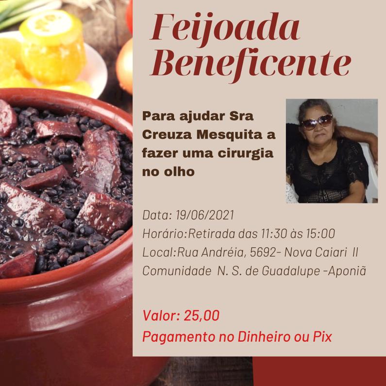 Uma feijoada será vendida no valor de R$ 25,00, para arrecadação de dinheiro, no próximo sábado (19).