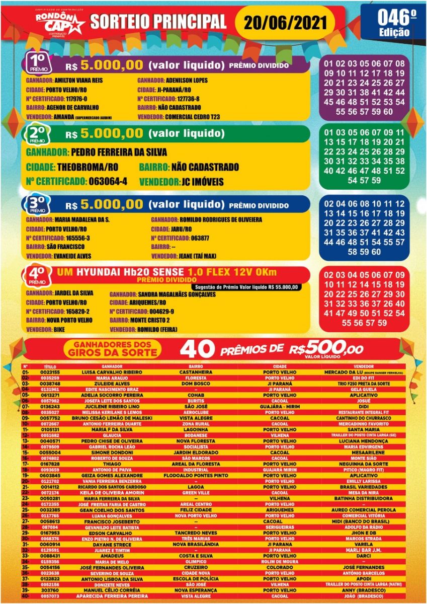 Confira agora os ganhadores do sorteio principal e do giro da sorte: