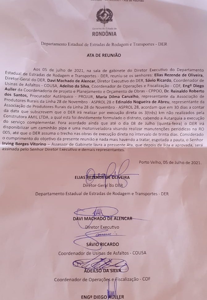O DER se comprometeu a finalizar o asfalto que falta apenas neste trecho da pista em um prazo máximo de 30 dias.
