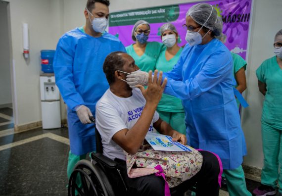 “A evolução do paciente foi muito boa. Sem ter febre, com a saturação 96 em área ambiente, ou seja, muito bem. E hoje, está recebendo alta para voltar para casa”.