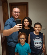 Evandro com a esposa Gigliane e os filhos Levi (de óculos) e Enzo.