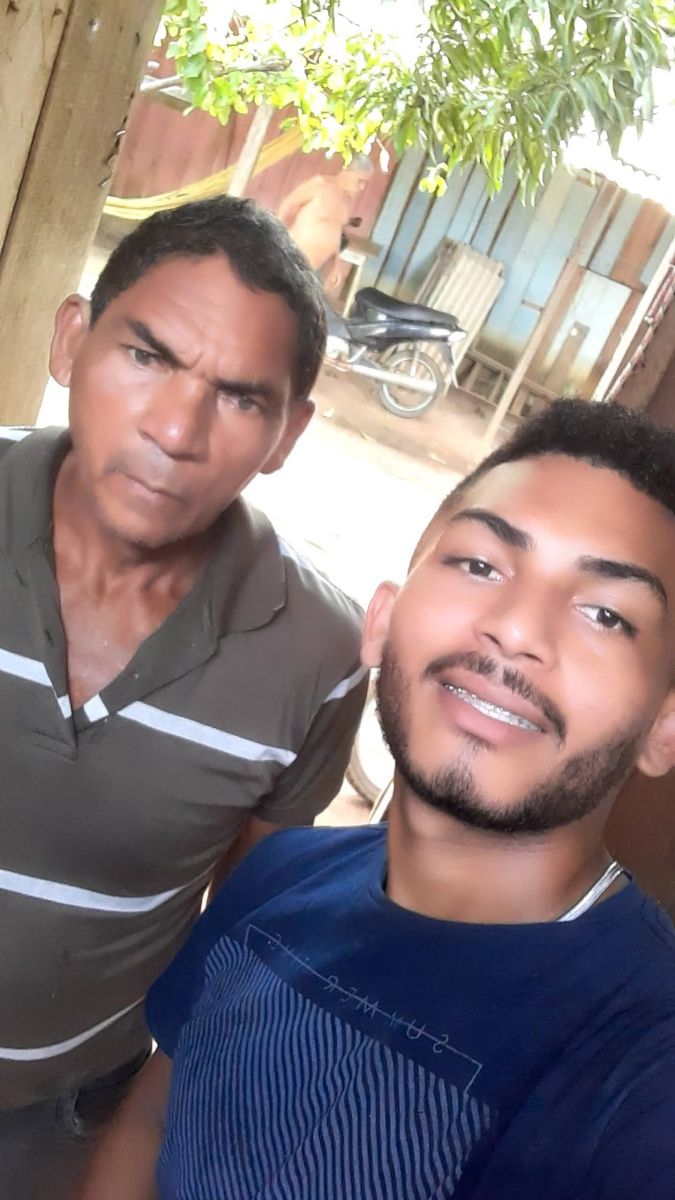 Ismael Faria dos Santos (camisa azul) junto com o pai José da Cunha Santos