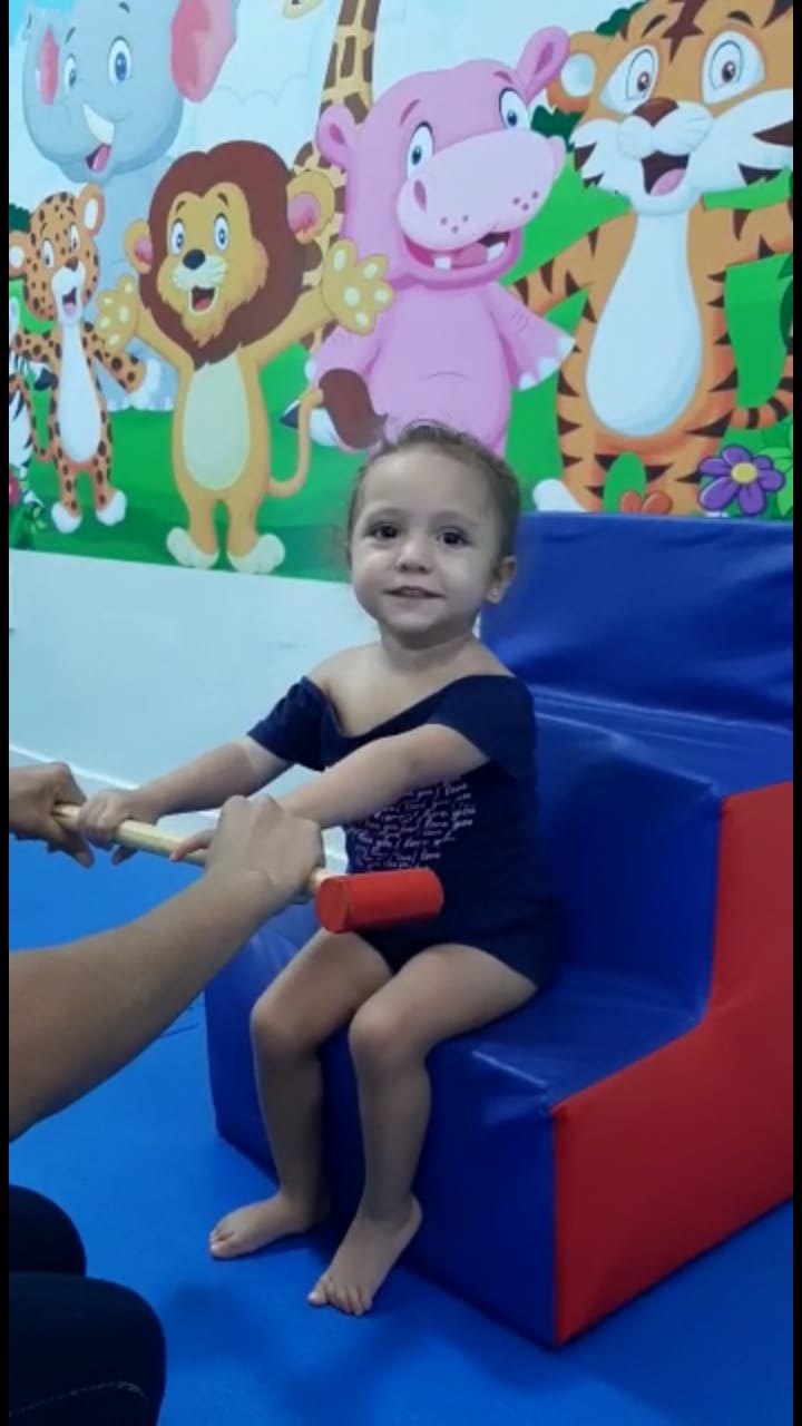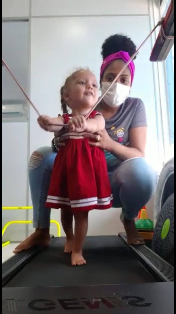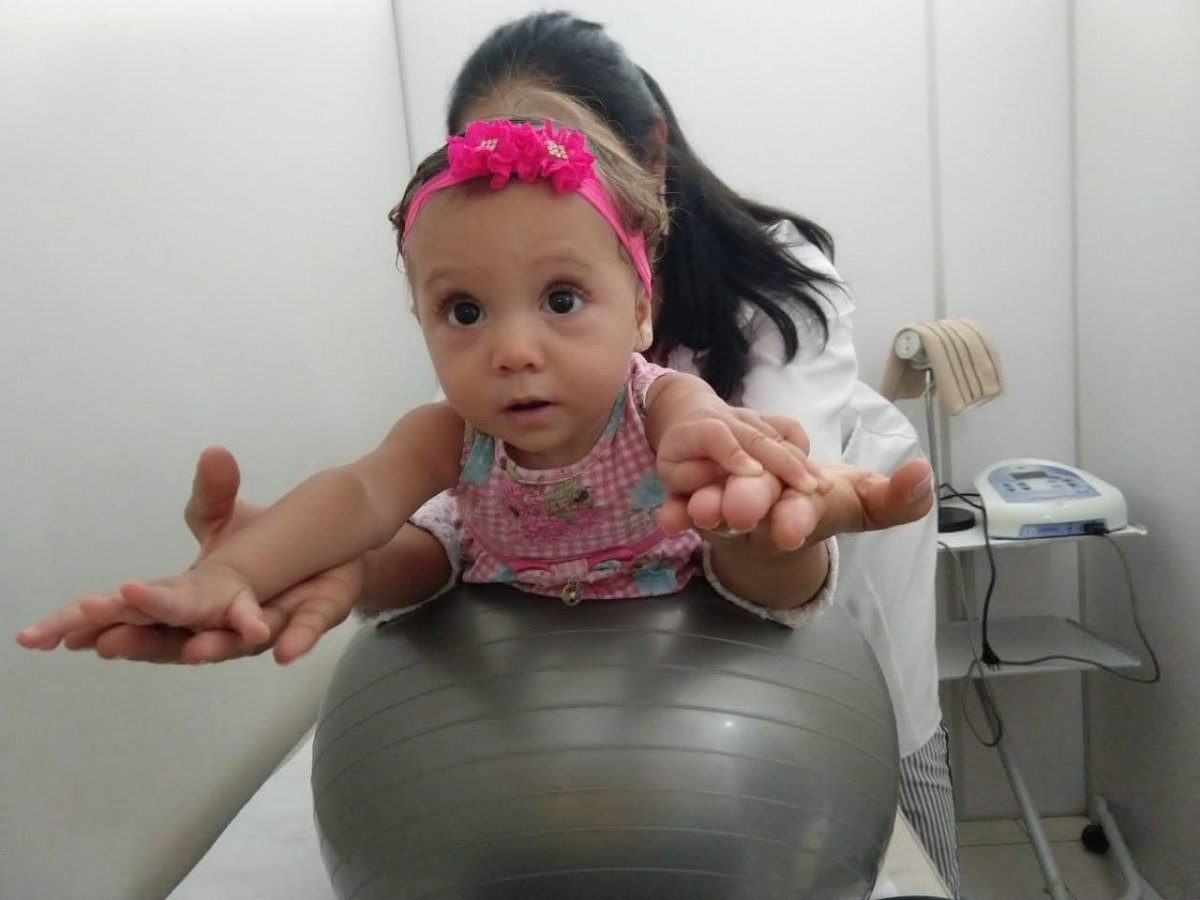 Ana Cristina começou o tratamento desde muito novinha e os resultados vêm sendo bastante evolutivos. Acompanhada dos pais e dos profissionais, a bebê faz vários esforços que irão ajudar na sua movimentação.