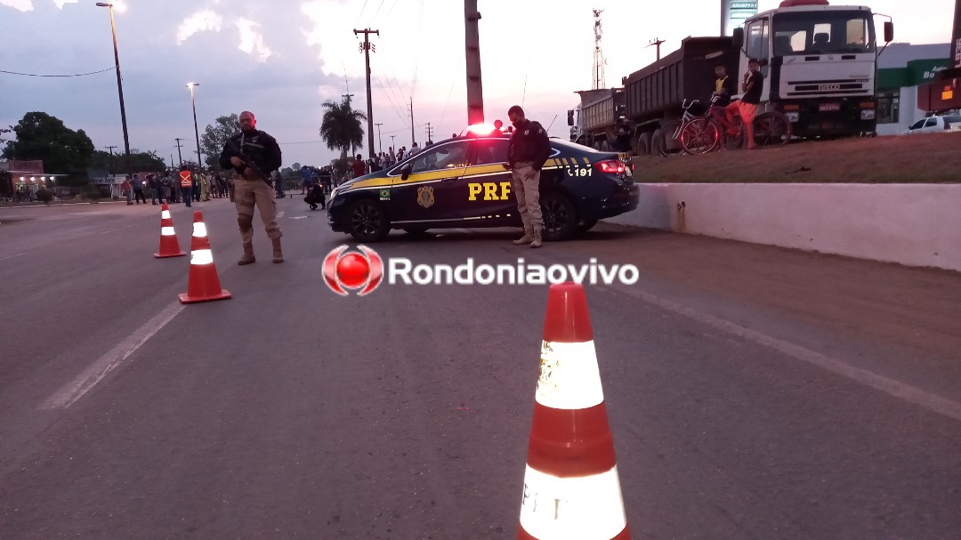 PRF no local de fechamento da BR-364 em Candeias | Foto: Richard Nunes/Rondoniaovivo