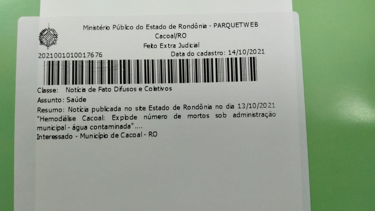 Rondoniaovivo divulgou que o Ministério Público Estadual abriu investigação para apurar pelo menos 30 mortes na clínica de hemodiálise, que foi assumida pela Prefeitura de Cacoal, em fevereiro deste ano.