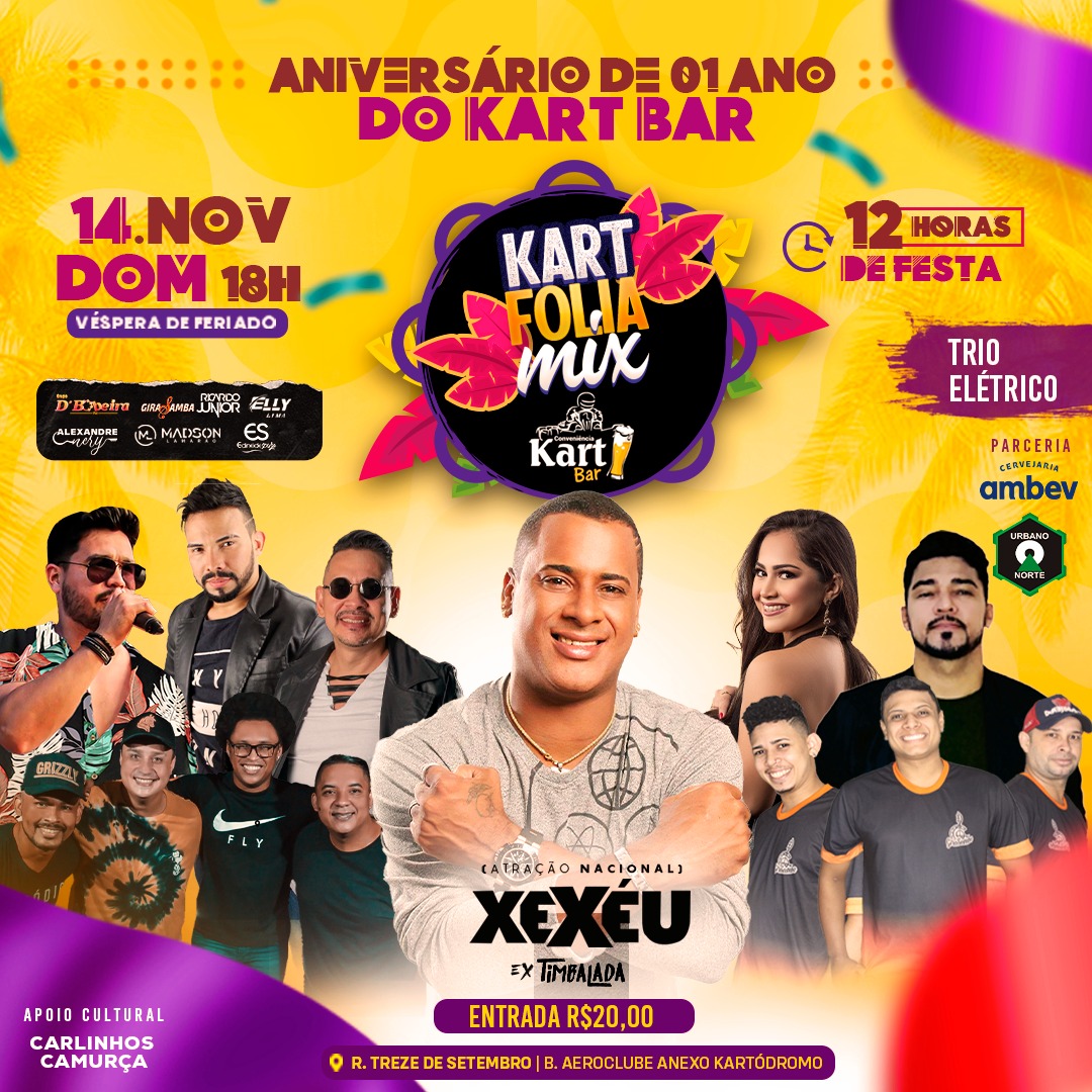 O Kart Bar completa um ano no próximo domingo - 14 de novembro (véspera de feriado) e para comemorar em grande estilo, irá promover a partir das 18h o primeiro "Kart Folia Mix" em Porto Velho (RO).