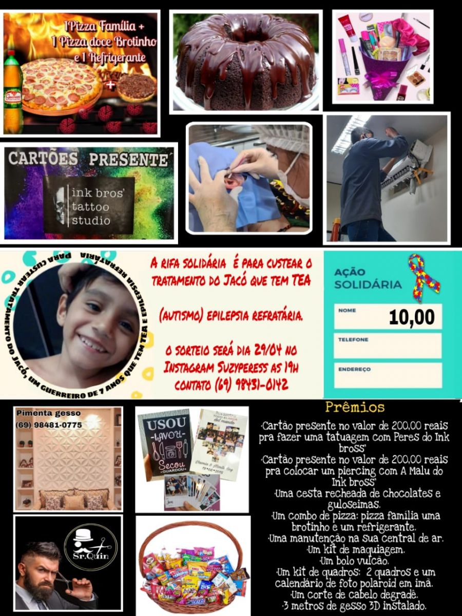 Para tentar amenizar essa situação, Suzy está vendendo uma rifa visando arrecadar recursos para ajudar no tratamento do filho. O valor de cada tíquete é de R$ 10 e serão sorteados dez brindes. O sorteio será realizado no dia 29 de abril, às 19h, pelo Instagram.