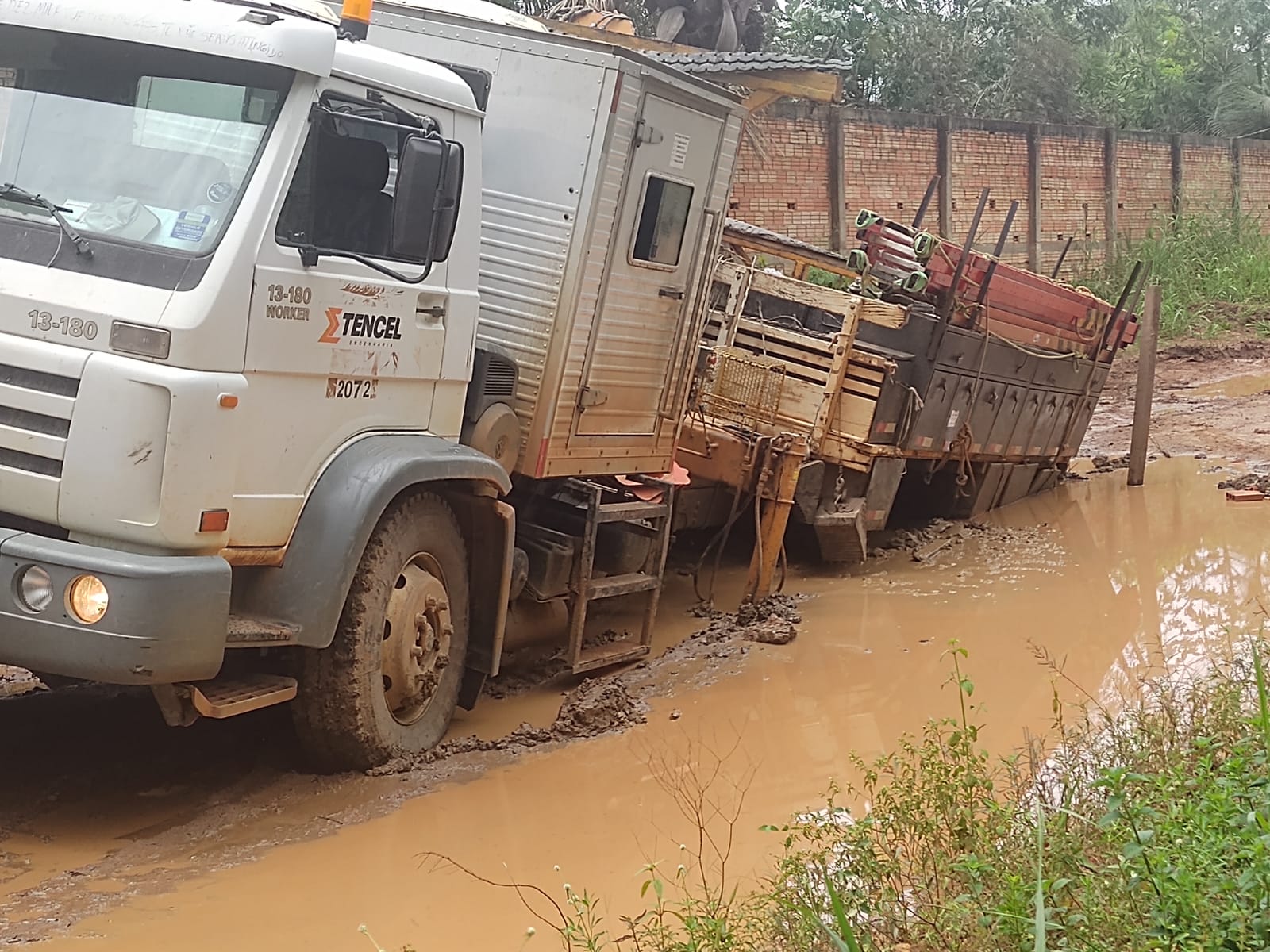 Em outra filmagem feita por William Homem do Tempo, são flagrados um caminhão e um carro também atolados e a população tentando tirá-los da imensa poça de lama. Aliás, nesse caso, toda a rua está tomada pela lama, formadas pelas chuvas.