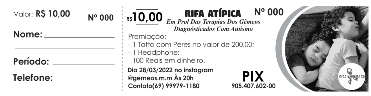 Com objetivo de arrecadar o dinheiro, uma rifa no valor de R$ 10 está sendo vendida e irá sortear 1 Tatto, 1 Headphone e 100 reais em dinheiro. Para adquirir, basta entrar em contato no número: (69) 99979-1180.