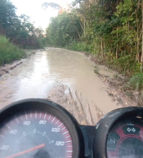 Poças de lama tomam conta da linha 'Eletrônica' que dá acesso ao rio Madeira, com destino a Calama | Foto: Arquivo pessoal