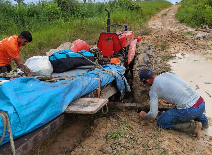 Para se ter uma ideia da situação dessa via, na maioria dos casos, as caminhonetes tracionadas até tentam enfrentar a lama e os atoleiros, mas não conseguem seguir viagem. Até os tratores que são chamados para desatolar essas picapes têm dificuldades em sair das poças de lama.