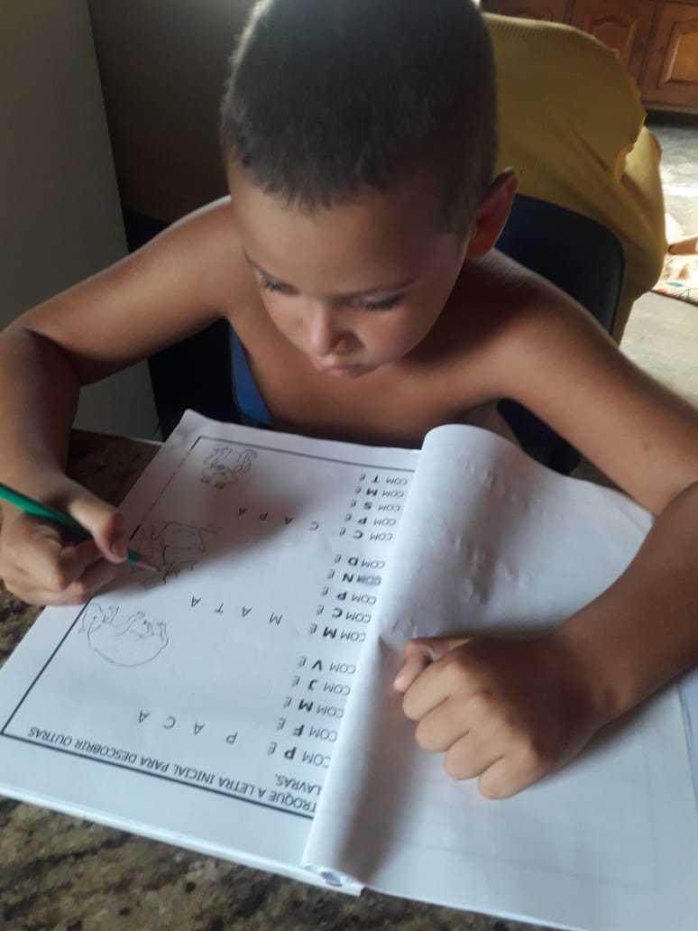 Ricardo, filho mais novo de Luzimar, estudando em casa | Foto: Arquivo pessoal