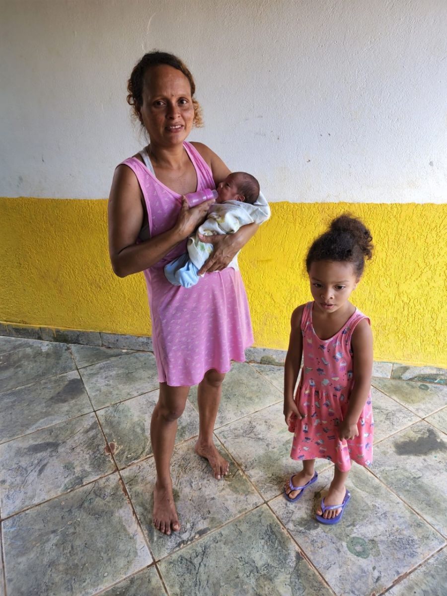 Dona Simone com filho recém-nascido de 20 dias e uma das filhas - Foto: William Homem do Tempo