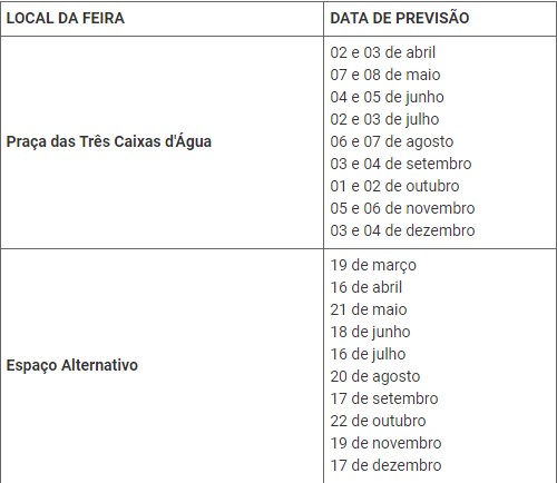 Confira a programação na tabela abaixo: