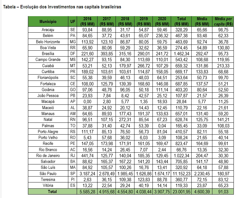 Outro ponto abordado é sobre os investimentos feitos em 2020, que atingiram R$ 13,7 bilhões, valor insuficiente para que seja cumprido as metas do Novo Marco Legal do Saneamento – Lei Federal 14.026/2020.