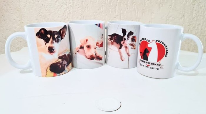 Protetores Voluntários estão vendendo canecas com imagens de animais resgatados e castrados pelo grupo - Foto: Divulgação