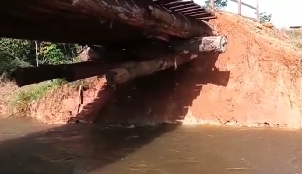 A ponte que liga a comunidade rural da Linha 22 à BR-364 está cedendo e correndo risco de deixar aproximadamente 500 famílias isoladas. Em um vídeo enviado ao