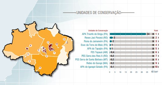 Entre as unidades de conservação, duas áreas seguem ameaçadas pela destruição: Resex Jaci-Paraná (em segundo lugar) e PES Serra dos Reis (na sétima posição).