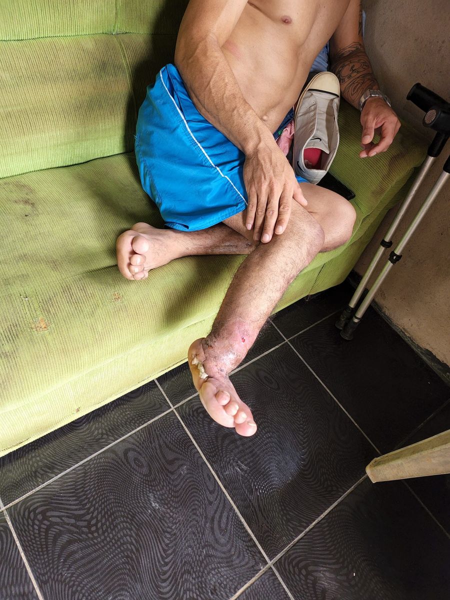 Mas mesmo com a ajuda de custo, ele conta que não é possível viver em paz. Por isso, pede para que as autoridades marquem consultas e façam a amputação do seu pé.
