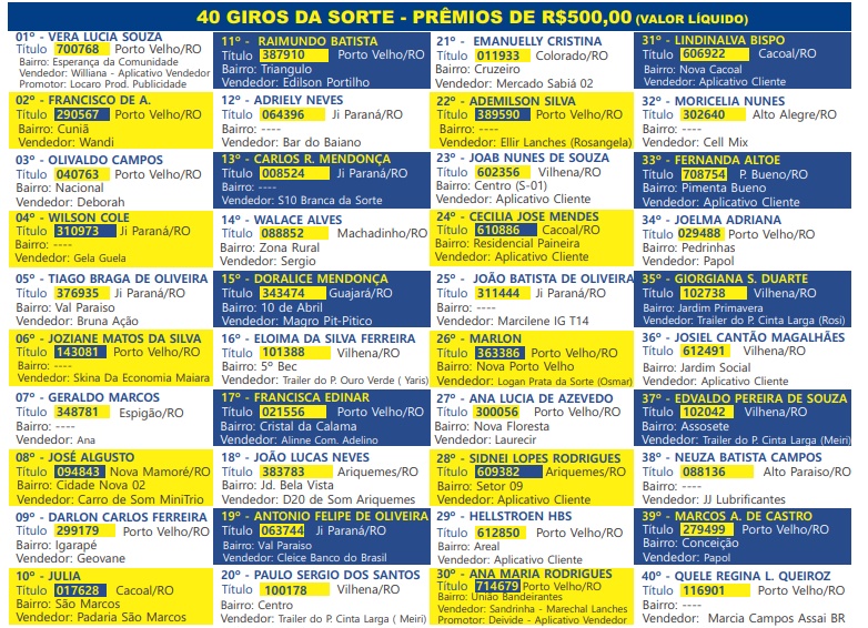 Você ainda concorre aos 40 giros da sorte, de 500 reais cada. E o título só 10 reais. Ajude as Apaes de Rondônia e deixe a sorte ajudar você!