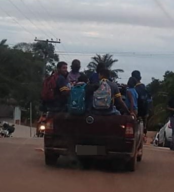 Para poder chegar até à instituição, vários alunos foram colocados na carroceria de um carro