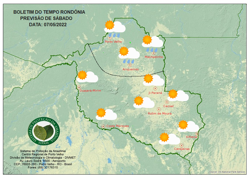 O Sipam informa que pode ocorrer chuvas rápidas em algumas regiões