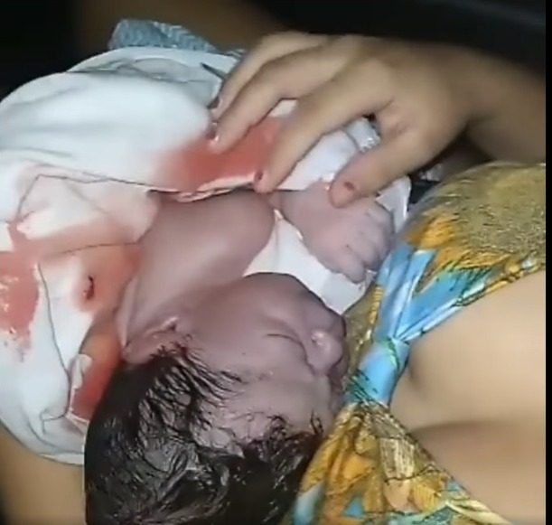 Vídeo também mostra amiga ajudando a segurar o bebê que tinha acabado de vir ao mundo - Foto: Reprodução de Vídeo