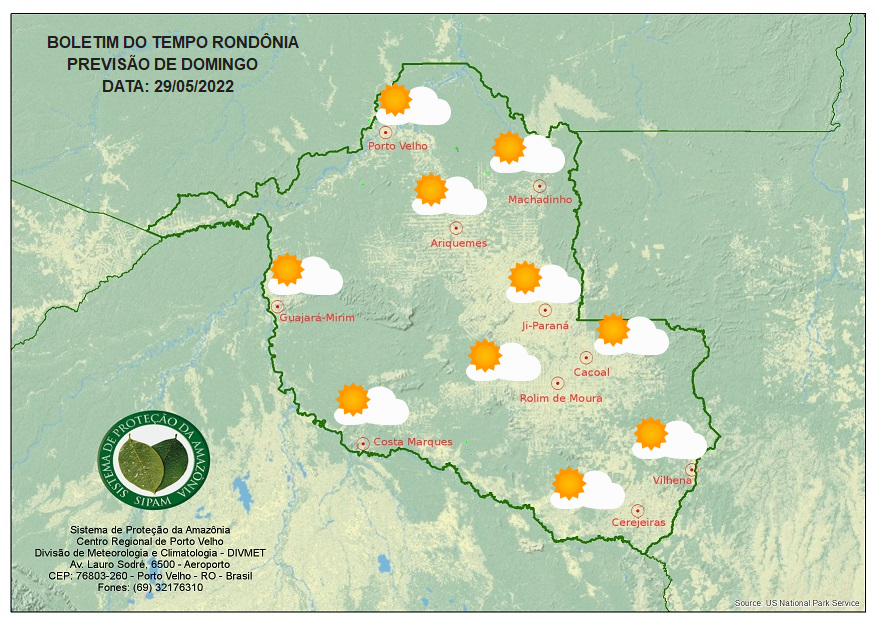 Existe uma possibilidade de uma rápida chuva na região do Vale do Guaporé