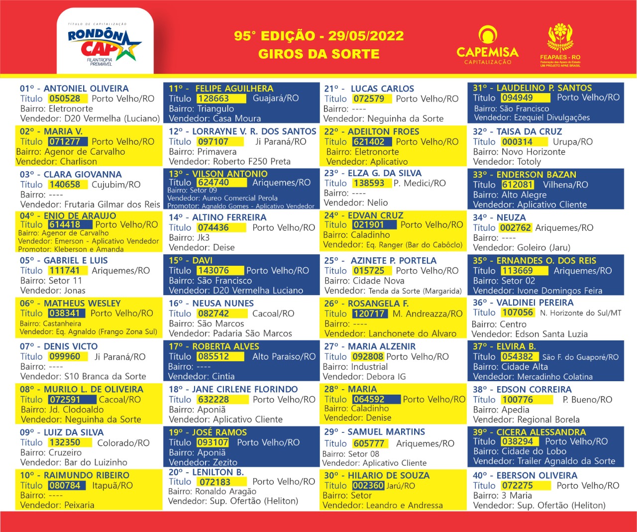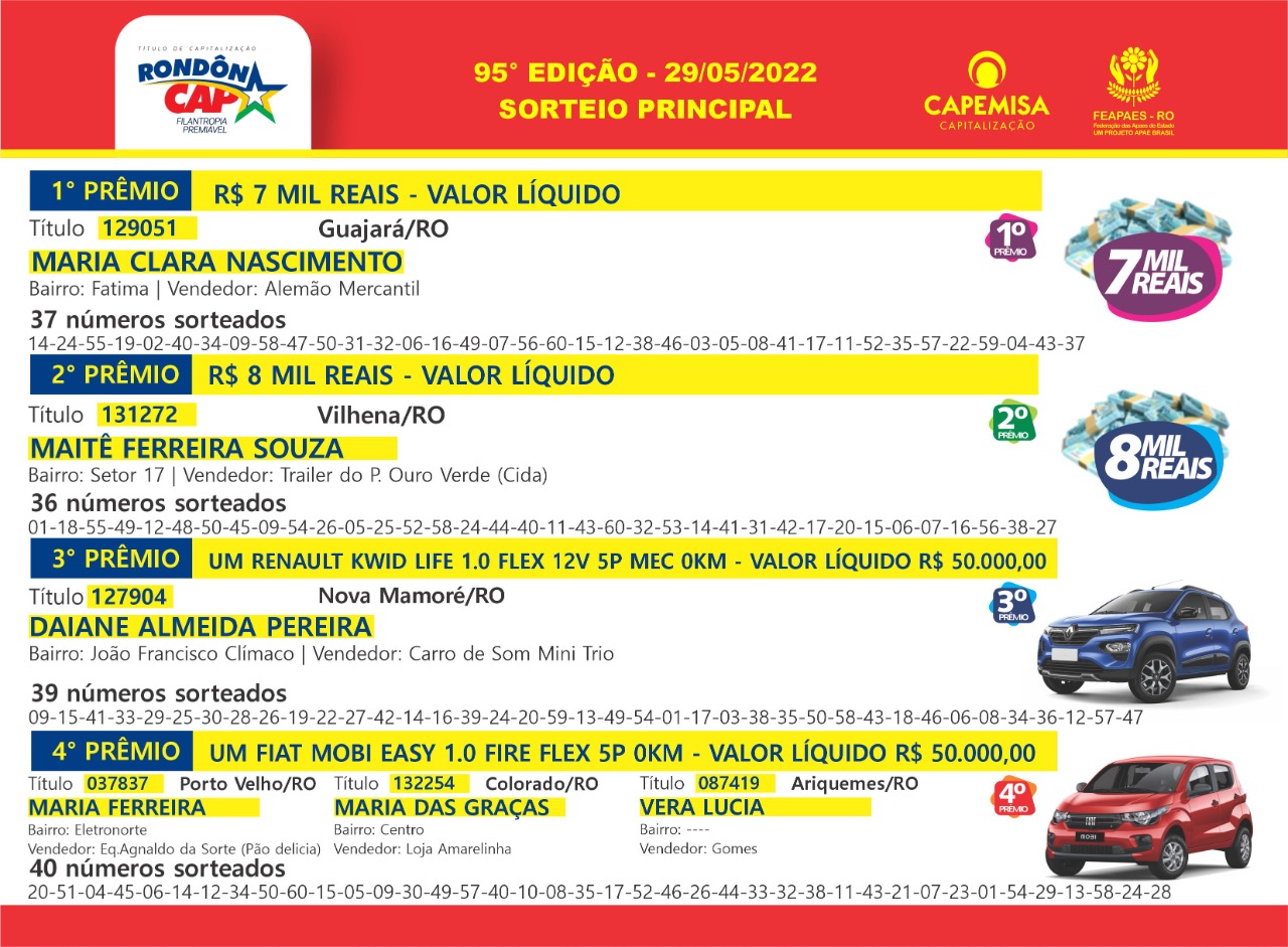 Quem ganha no Rondôncap todo mundo vê, conheça agora os ganhadores do último domingo: