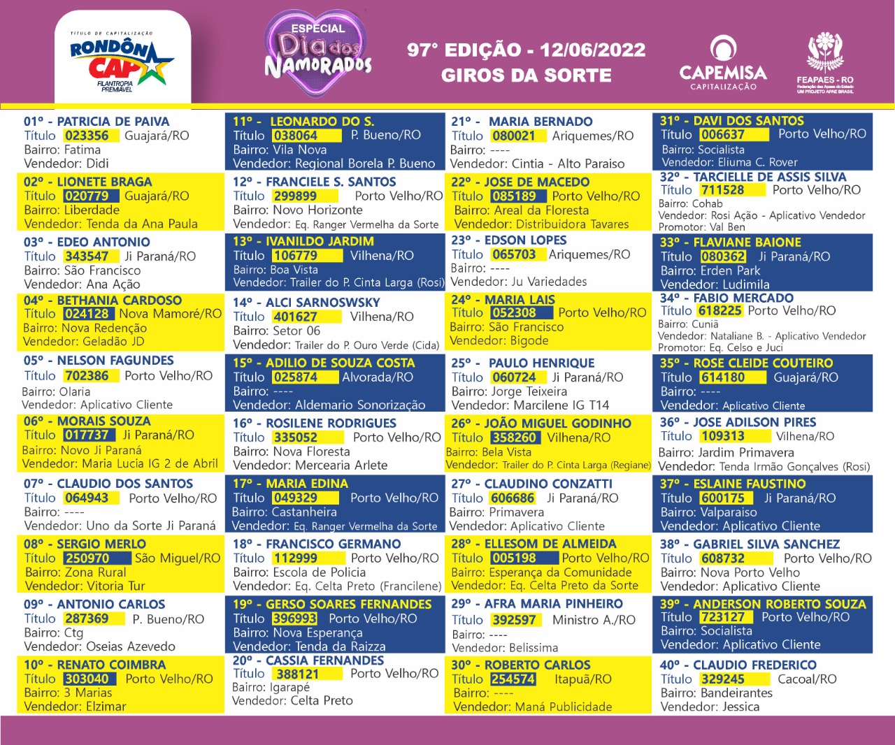 Quem ganha no Rondôncap todo mundo vê, conheça agora os ganhadores do último domingo: