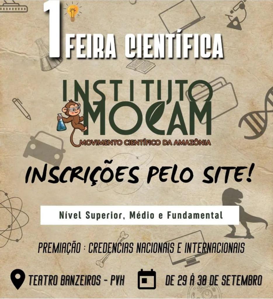 Por isso, o Instituto Mocam vai realizar nos dias 29 e 30 de setembro, a 1ª Feira Científica com premiação de credenciais nacionais e internacionais para alunos dos ensinos Superior, Médio e Fundamental.