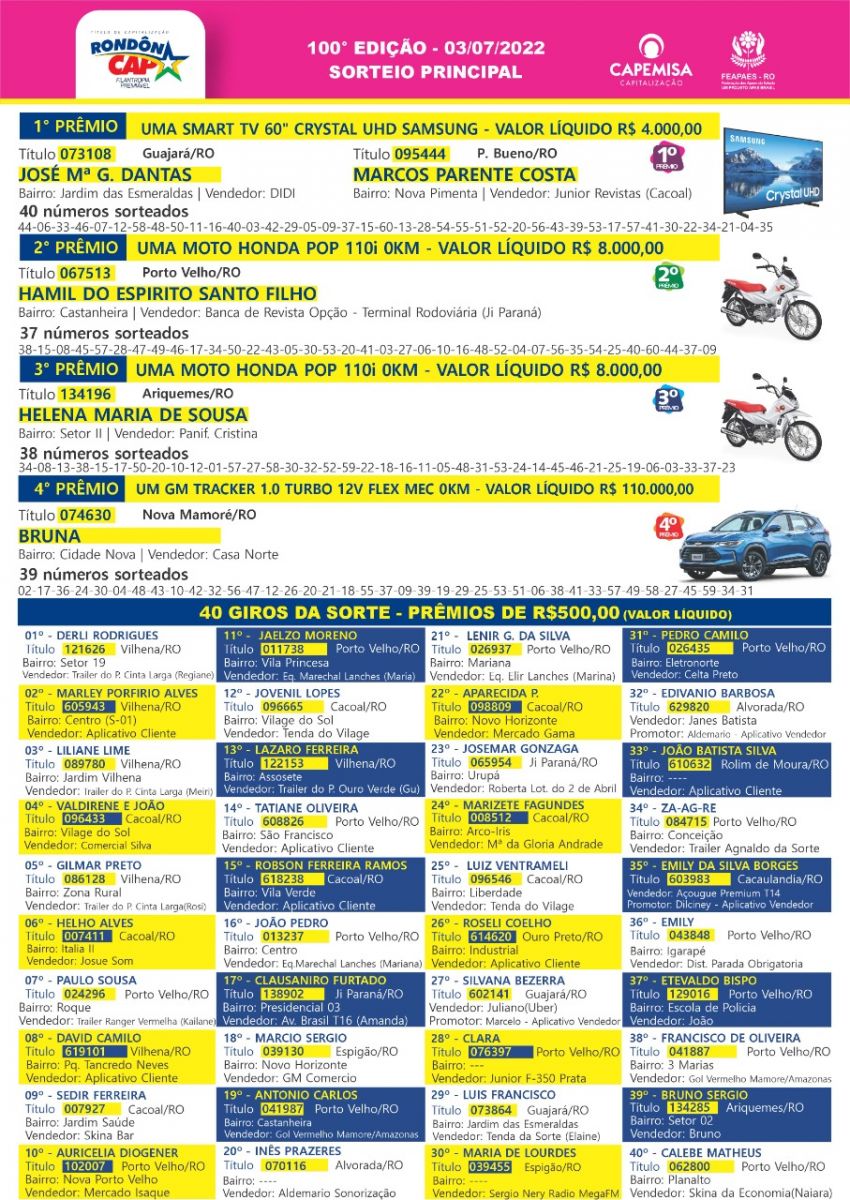 Quem ganha no Rondôncap todo mundo vê, conheça agora os ganhadores do último domingo: