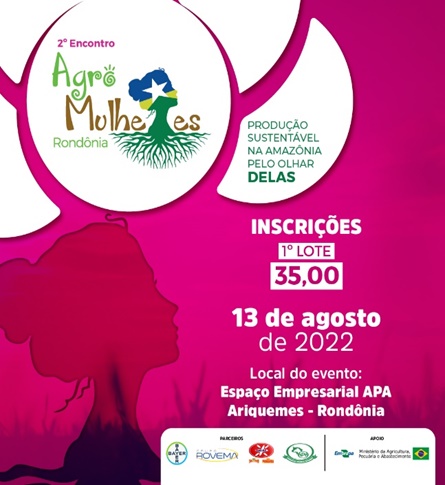 Produção sustentável na Amazônia pelo olhar Delas é o tema do 2º Encontro Agro Mulheres Rondônia, que será realizado no dia 13 de agosto de 2022, no espaço da Associação dos Pecuaristas de Ariquemes – APA, em Ariquemes – RO, das 8h às 18h. As vagas são limitadas e as inscrições podem ser feitas online.