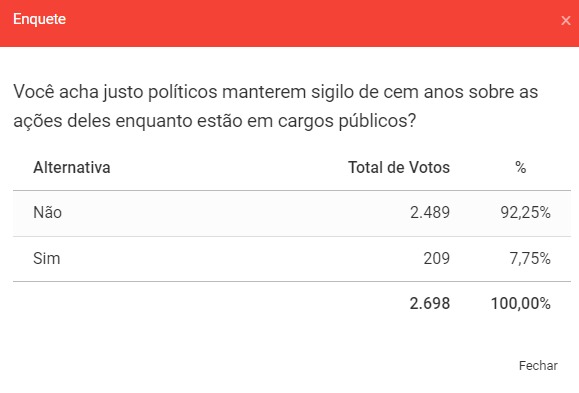 A enquete não tem caráter científico e é apenas uma pesquisa de opinião pública