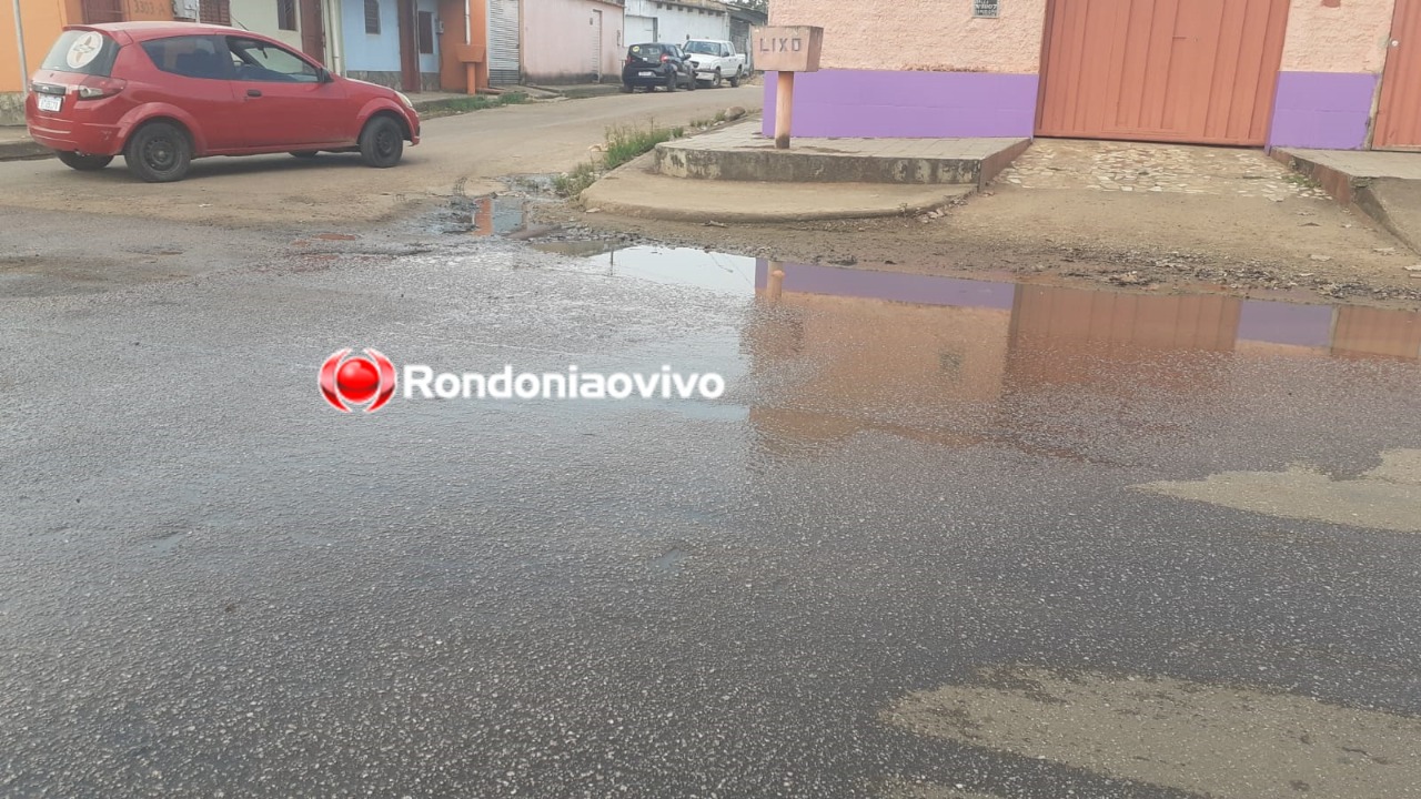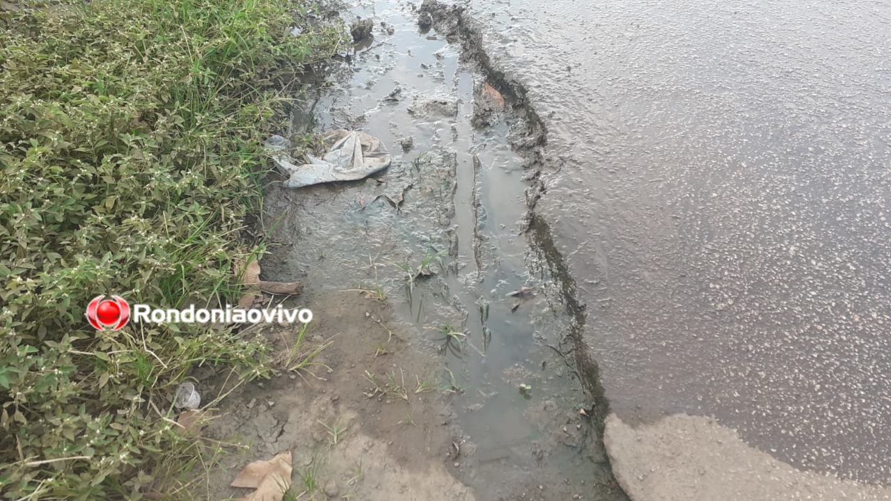 É tanto esgoto que atravessa a rua e acumula do outro lado da via - Foto: Felipe Corona/Rondoniaovivo