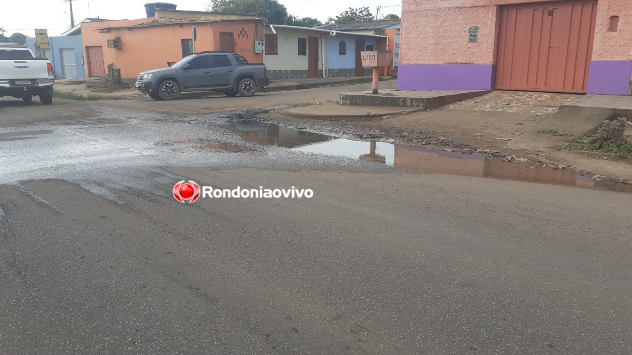 Água podre continua minando na esquina da Avenida Campos Sales com a Rua Vicunha, na zona Sul - Foto: Felipe Corona/Rondoniaovivo