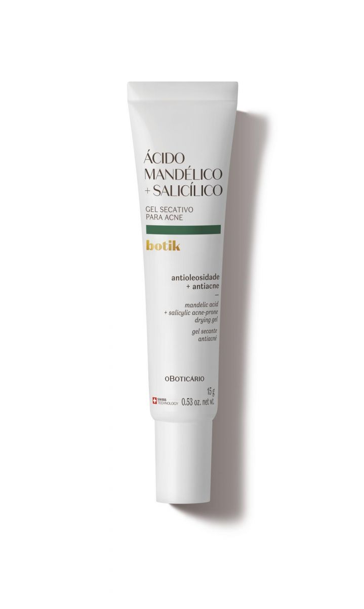 Ácido Mandélico + Salicílico Gel Secativo Antiacne une a ação do ácido Mandélico, que combate as bactérias e reduz a acne, e ácido Salicílico, poderoso adstringente que age desobstruindo poros, em um gel de rápida absorção com potente ação secativa e eficácia comprovada na redução do tamanho e na vermelhidão da acne em até 8 horas.