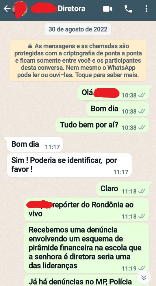 Diretora queria saber quem a teria denunciado; Rondoniaovivo não revelou