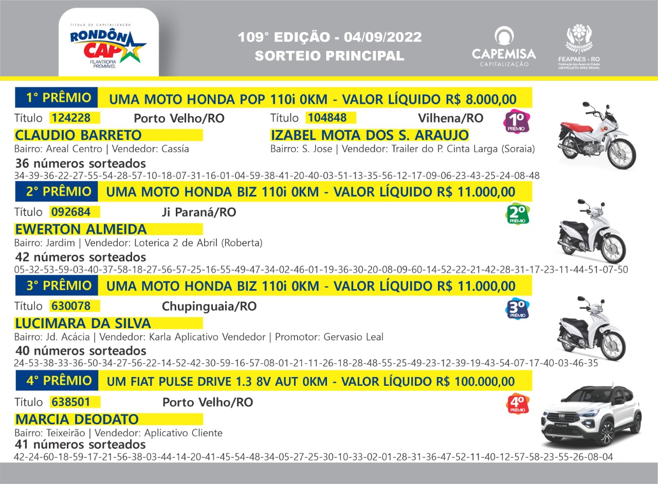 Quem ganha no Rondôncap todo mundo vê, conheça agora os ganhadores do último domingo: