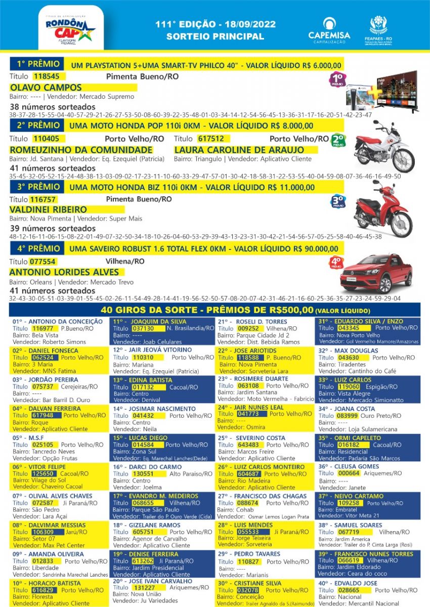 Quem ganha no Rondôncap todo mundo vê, conheça agora os ganhadores do último domingo:
