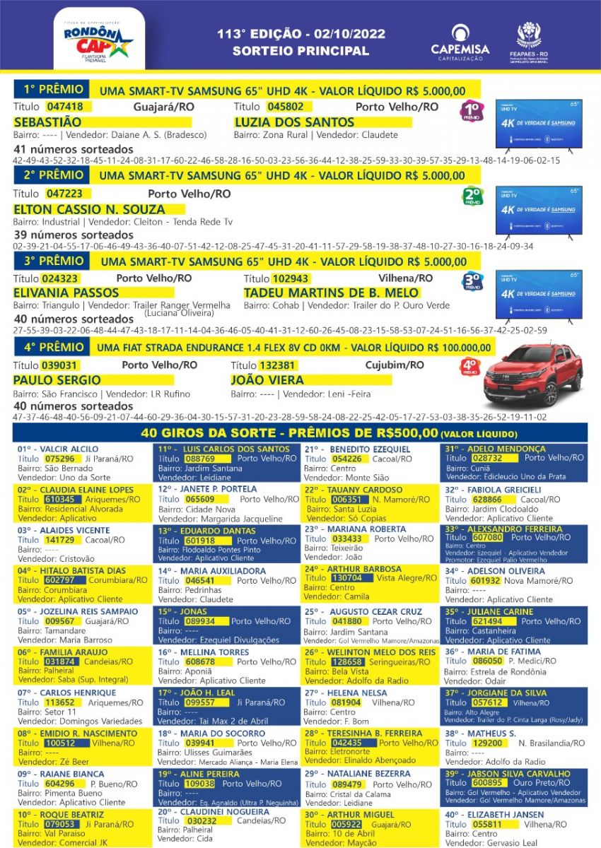 Quem ganha no Rondôncap todo mundo vê, conheça agora os ganhadores do último domingo: